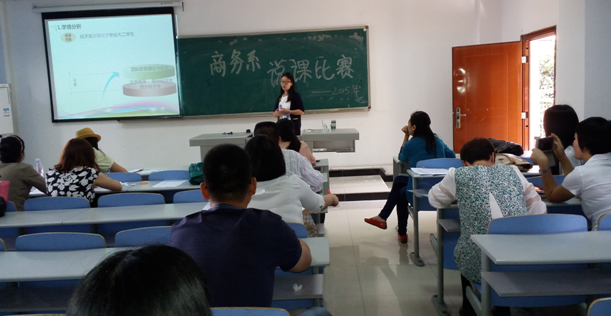 (商务系记者 寸家菊)为了深入贯彻公司新进教师说课比赛的文件精神,为不断提高我系新进教师的课程设计和教学能力,同时也为给全系教师提供一个互相交流学习的平台,商务系于2015年5月11日16:40在2教学楼202教室举行了2015年新进教师说课比赛活动。本次参加说课比赛教师是商务系国贸教研室专职老师张灿和经济法教研室专职教师莫紫霄,她们分别对《国际贸易理论与实务》和《经济法》两门课程进行了说课。商务系副主任张红梅,国际经济与贸易和国际商务教研室负责人向丹,会展经济与管理教研室负责人邹烨,经济法教研室邵黎承担了此次活动的评委,商务系全体教师参加了此次教学说课比赛活动。两位老师严格按公司说课要求用精美的PPT,声音洪亮、语速适中、语调抑扬顿挫、热情饱满向全系老师们展示了说课内容。两位新老师风格不同,各有千秋,但是对教材内容、员工知识水平把握都比较好,教师基本素质过硬,说课效果获得好评。